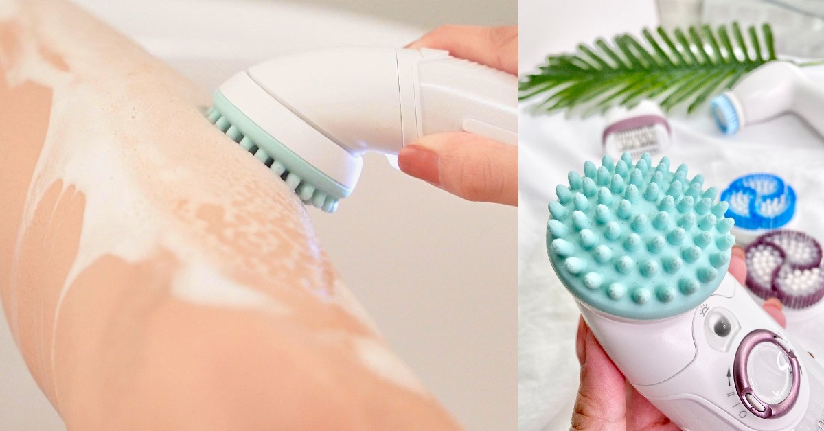 要保持手跟腿的乾淨滑溜~不只要除毛,更要做好去角質的動作,SES9970美體刀最方便的是它可以直接把刀頭換成去角質的刷頭,除毛前先去角質可以有效避免毛髮倒插,而且比起手動去角質除了更加快速、不會手痠之外,還有高達6倍的效果。