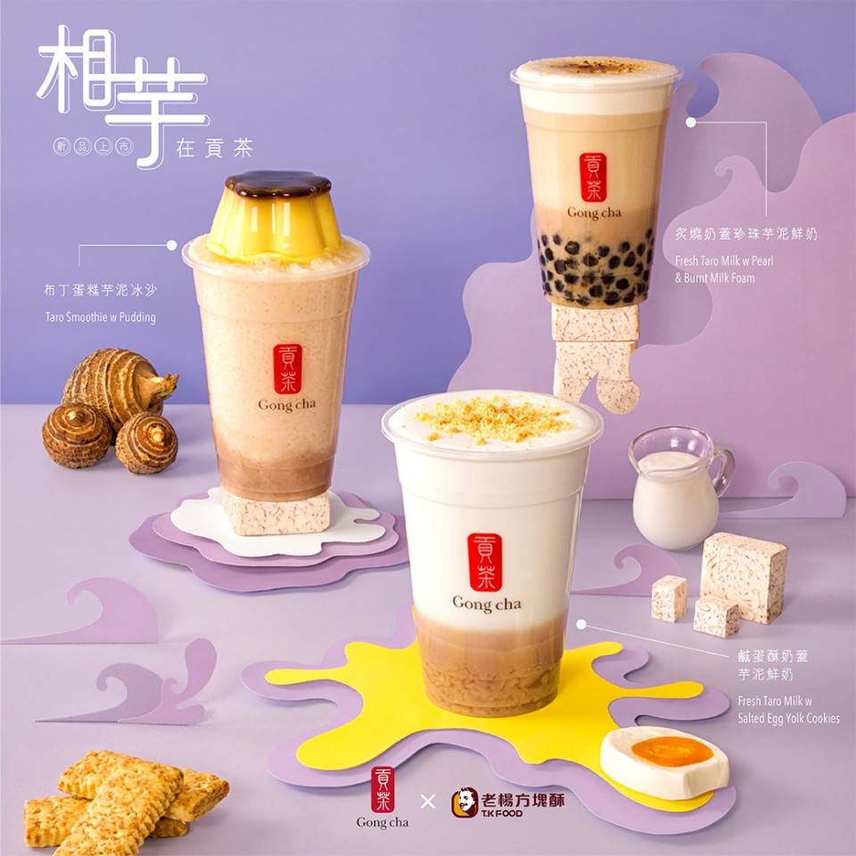 手搖茶飲品牌貢茶這次推出多款芋泥限量新飲品!貢茶以「台灣經典原味」為概念,結合超受歡迎的芋頭,加上老楊方塊酥鹹蛋黃餅、統一布丁還有貢茶招牌經典奶蓋、黑糖珍珠,光想像就覺得一定香濃又超有飽足感啊!
