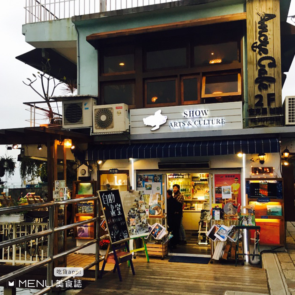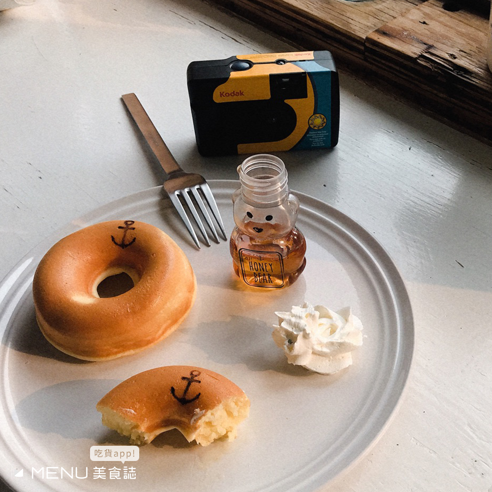 安克黑咖啡位於淡水老街的尾端,是一棟兩層樓的小矮房。一樓平時作為畫室使用,二樓才是咖啡廳的主樓,木頭樑柱以及大片玻璃的設置有漁夫小屋的意象。店家特製甜甜圈鬆餅上還印著小小的船錨,非常可愛!