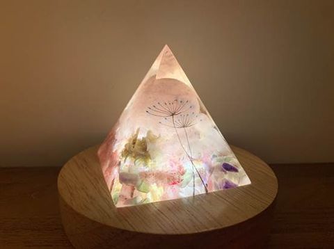 看起來超浪漫唯美的粉晶球夜燈,可以化為媽咪的助眠好夥伴,上班回到家後,開啟美美地水晶夜燈,就可以幫助媽咪舒壓,金字塔可以放在桌上當擺飾或是療癒小物,也可以放在木頭燈座上!而木燈座可以客製化,雕刻出祝福語或指定的圖文哦!