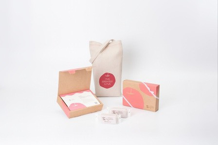而包裝上則運用經典牛皮紙盒加上粉色蘋果插畫,搭配粉紅緞帶,加上微熱山丘限定版布提袋,送禮自用都可以。