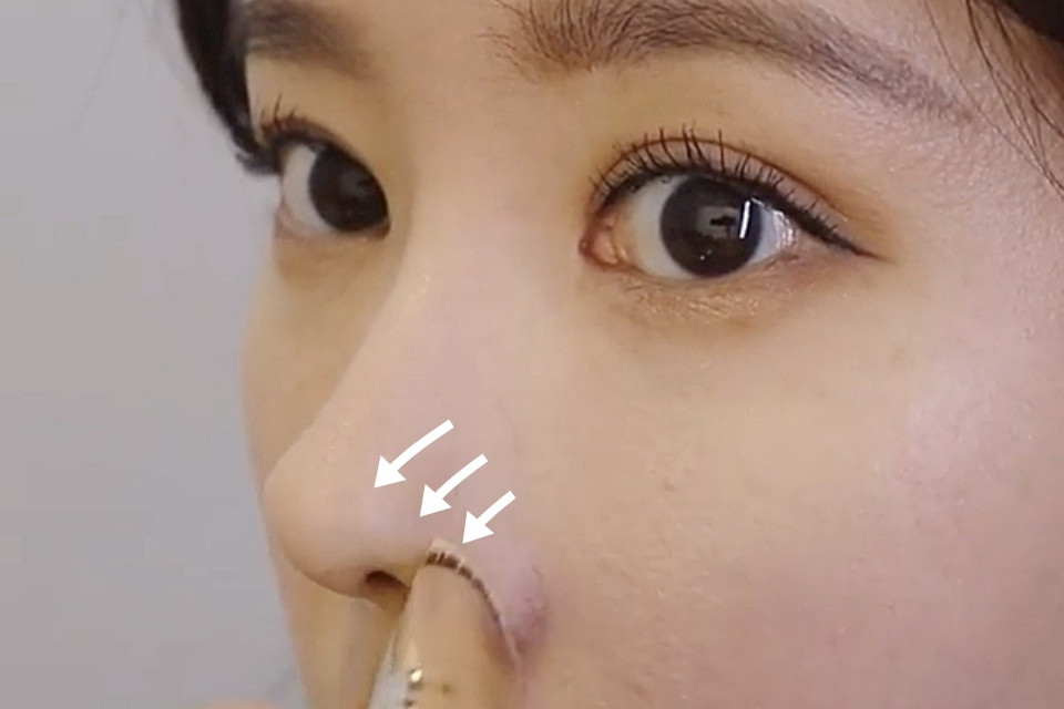 重點技巧就是順著毛孔的方向「往下」刷上,用刷毛較密的遮瑕刷、對於毛孔有比較好的遮瑕效果。