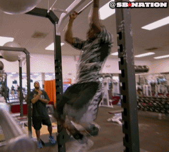 一個標準的引體向上,身體的運動軌跡應該會是在同一直線上,當你在動作時身體大幅度晃動,代表你的上半身力量不足,必須藉由下半身的擺動給與身體額外的動能才能完成動作。