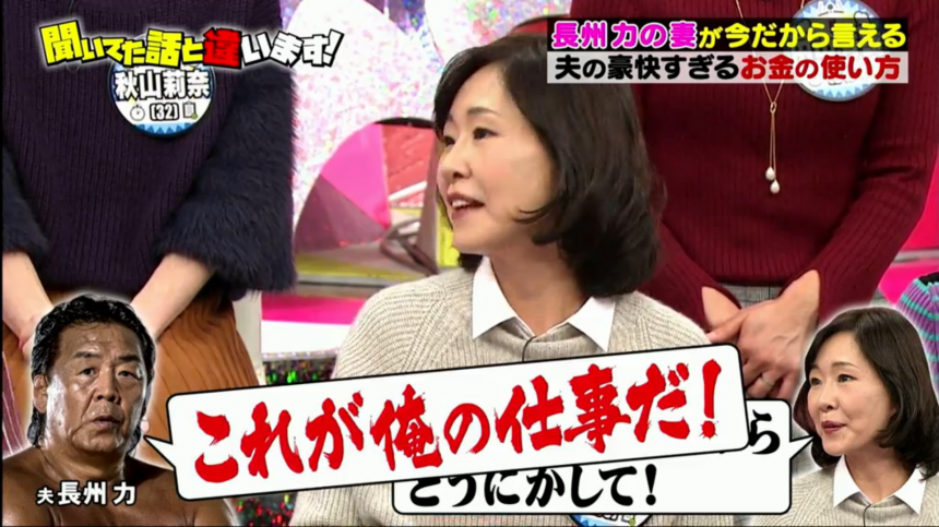 有一次,長州力的太太對他說「今個月的經濟有點困難,你能想點辦法嗎?」,然後長州力霸氣回答妻子「(應酬同行人士)那就是我的工作啊!」