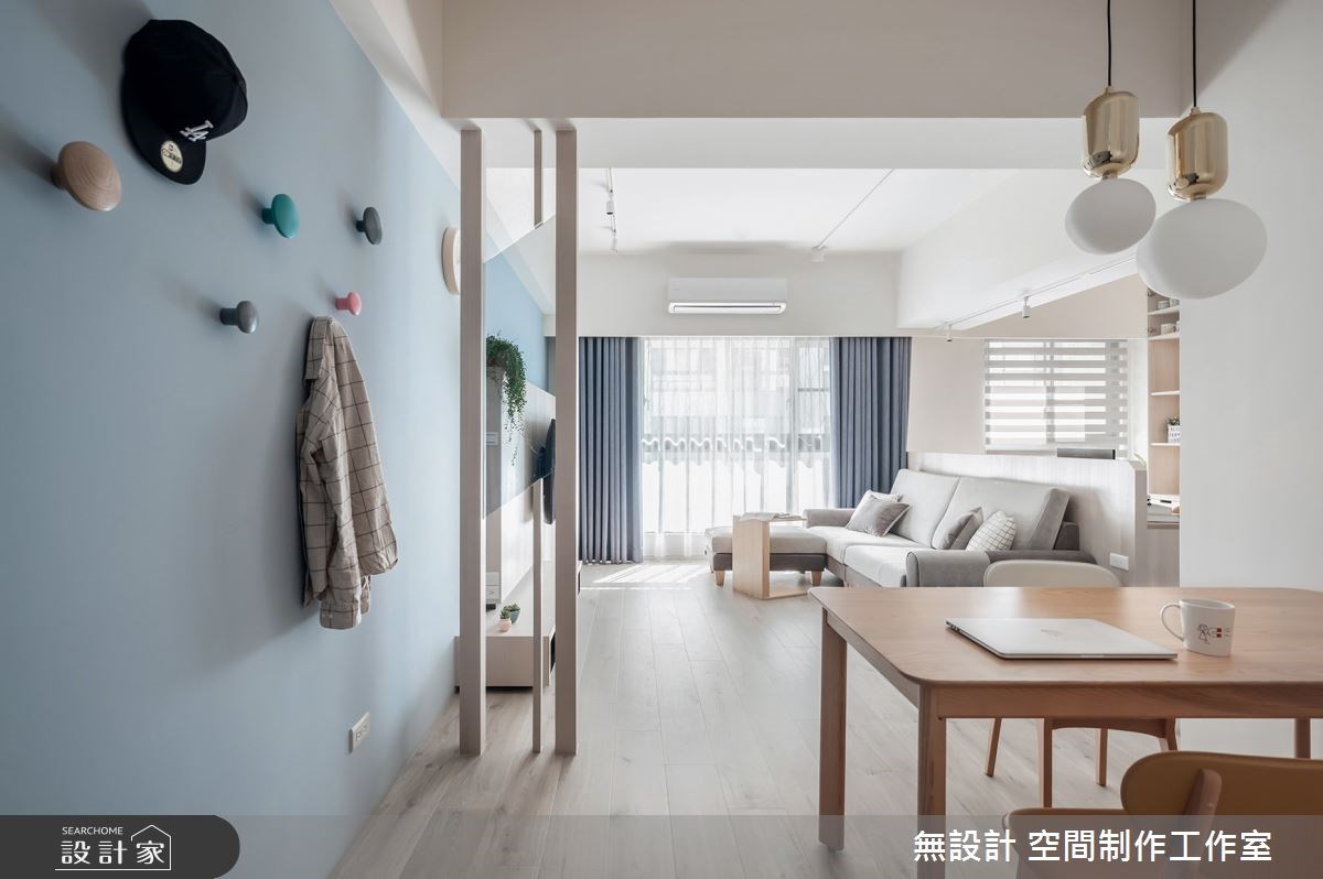 有些空間格局在規劃上進門即直視用餐區,在不調動格局的狀態下玄關過渡到餐廳空間利用屏風當作橋樑,能同時做到視覺上的遮蔽性、空間上的機能界定,以及光線的穿透感。