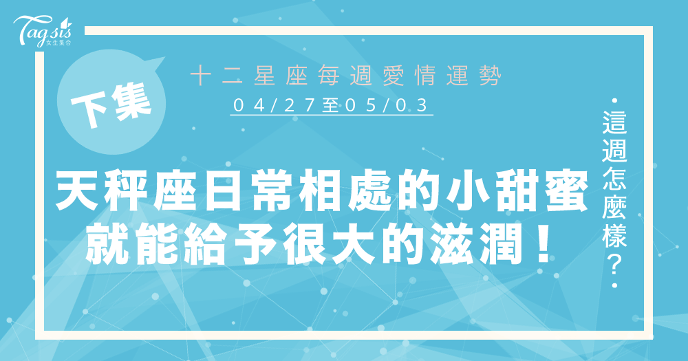 有伴的天秤SIS,日常相處的小甜蜜就能給妳很大的滋潤,讓妳充滿信心的經營這段平平實實的幸福。