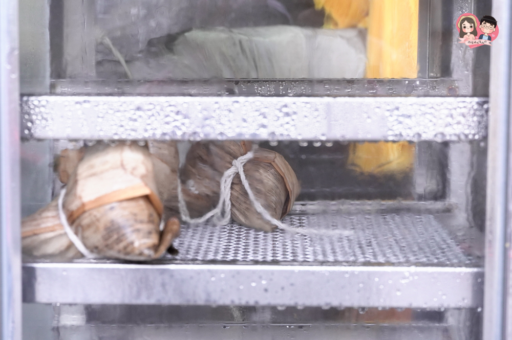 麗灣草仔粿北部粽,打開竹葉前就聞到很濃厚的竹葉香,那是透過熱蒸氣讓竹葉的香氣湧出,再滲透入米粒之中,使用長糯米並有醬香味可以聞得出來是拌炒過才有的香氣!內容料多實在一顆肉粽NT.40 裡面有香菇、大塊的肉塊沒有肥肉(正合我意),還有鹹蛋黃!每一口都感覺到粽子的扎實感,米香味十足展現,完全不需要任何醬料就能吃到肉粽米粒原始的香味,這樣的傳統風味肉粽是我很愛的口味,簡單也不會華而不實,讓一般人都能在生活中享用到的簡單傳統美食。