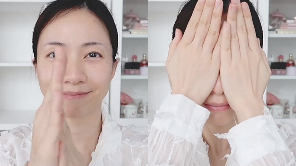 最後就是加速眼霜吸收的步驟,將雙手搓熱後覆蓋在眼周上、微微熱敷的效果可以促進眼周的血液循環,不僅幫助眼霜吸收,還有消水腫、淡化黑眼圈的效果。