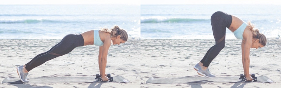不過,這組動作會支撐在啞鈴上做棒式,如果家中沒有啞鈴時就不建議做(不適合用寶特瓶代替),以避免重心不穩造成運動傷害。