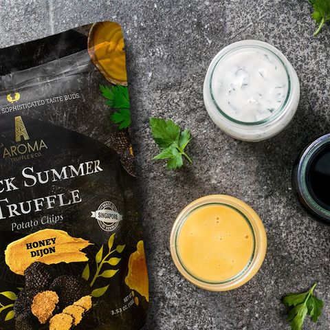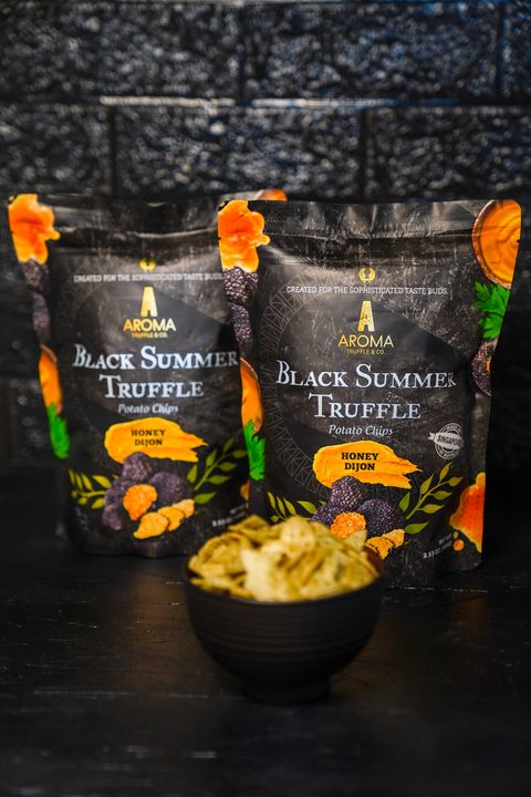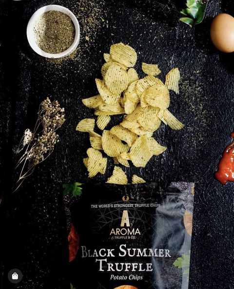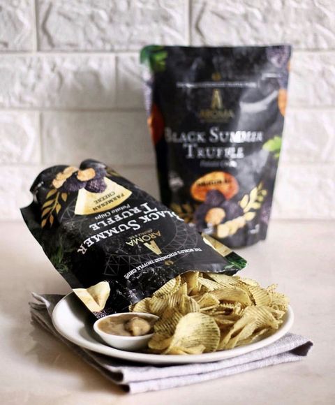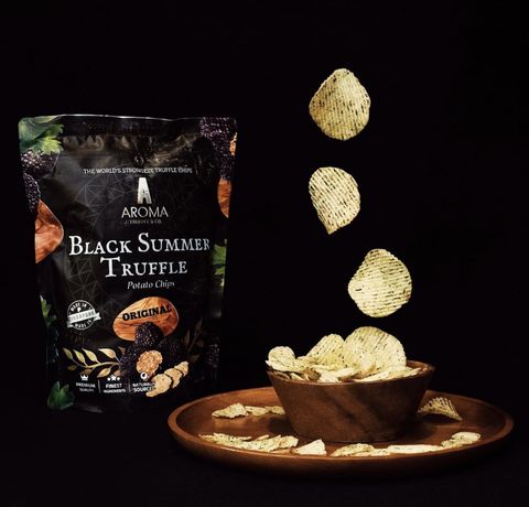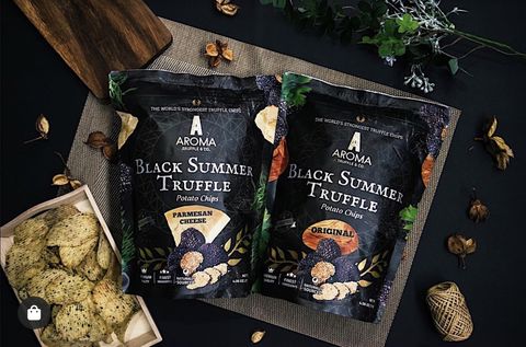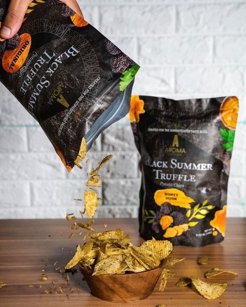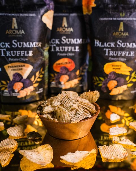 Aroma Truffle為目前市面上最優質的黑松露手工洋芋片,每顆珍貴的黑色夏季松露都是經過精心挑選,一顆顆從義大利省古城 Spoleto的森林中採收,平均保鮮期在4到7天,因此採收後必須立即空運到新加坡,以確保最佳品質。經過獨家技術配方,100%手工烹製且擁有ISO22000品質認證,吃一口絕對能成為讓你愛不釋手的洋芋片。