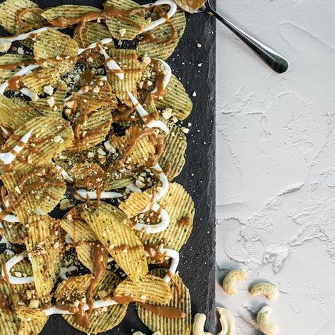 香脆的洋芋片與起司之王-帕瑪森起司相結合,有著獨特的口感且味道濃郁,起司的新鮮風味和淡淡的鹽鹹立即在口中化開,極為可口,以上等的橄欖油烹調。最後以蒔蘿草作點綴更為突顯其風味。