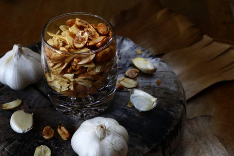另外存放蒜片的方法也非常簡單,只要將烤好的蒜片與少許橄欖油攪拌,並置入冰箱即可存放一週左右。