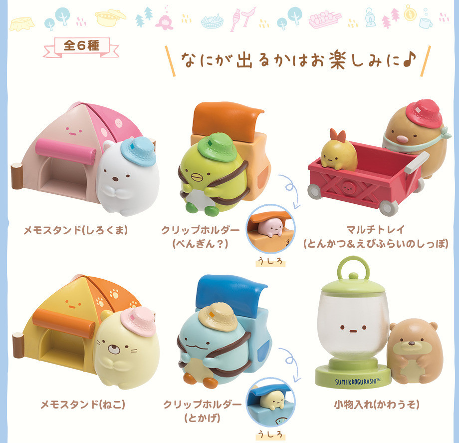 以上就是這次角落小夥伴推出的全新「露營系列」啦~每一款造型都可愛到超犯規,讓人不管是哪一個商品都超心動想收!全系列也將於五月正式在日本開賣,喜歡角落小夥伴的朋友們可以開始慢慢尋覓代購買起來,跟著角落小夥伴一起來場療癒露營之旅吧~