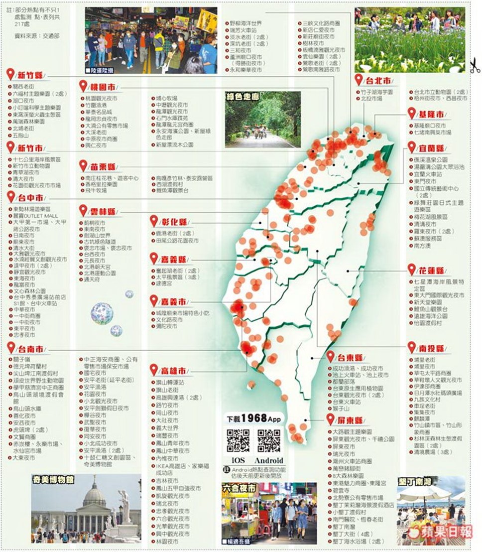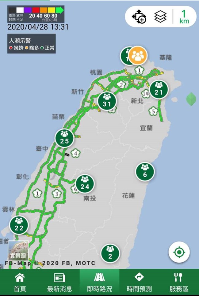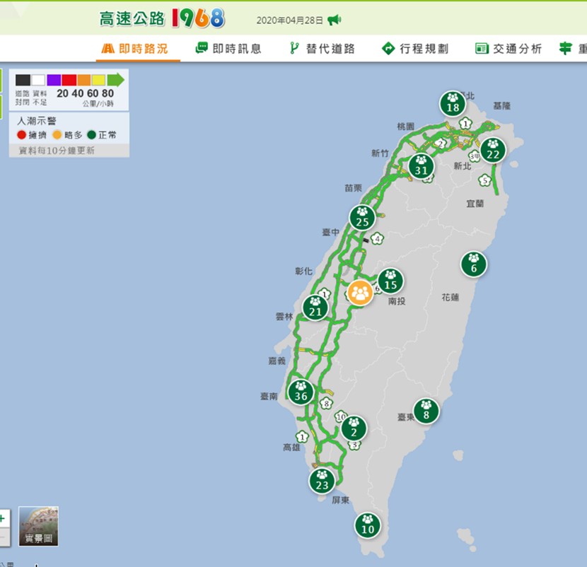 雖說台灣已經連續三天無武漢肺炎(新冠肺炎)確診病患,為避免即將來到的5/1勞動節連續假期造成熱門景點人潮洶湧造成社交群聚的風險,中央流行疫情指揮中心與交通部合作,將原本是提供用路人查詢國道即時路況「高速公路1968」APP推出「人潮警示系統」加強版,利用紅黃綠3色燈號,每10分鐘更新234個地點的人潮擁擠程度。