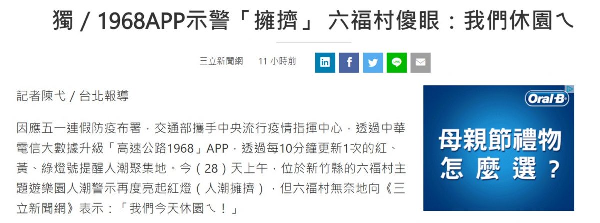 若警示的景點位於郊區,因附近基地台涵蓋的範圍較大,若位置鄰近較熱鬧的夜市或是交通要道,就會出現明明景點沒人APP卻顯示人潮擁擠的問題。以六福村明明就休園卻被APP警示人潮擁擠為例,推測原因應該與六福村鄰近龍潭工業區和交流道,1968APP可能是偵測到通勤尖峰時刻的車流才亮起紅燈,隨著車流趨緩,人潮警示又慢慢恢復正常。