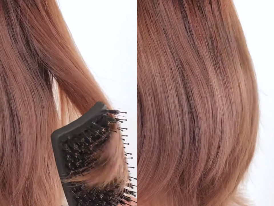 髮型師特別說,相較於圓梳是360度、寬版梳因為只有一面有梳毛,或是對於新手來說更好上手,另外刷毛也建議選擇豬鬃毛的刷毛、抓髮力會更好,頭髮吹整後的光澤也會更明顯。