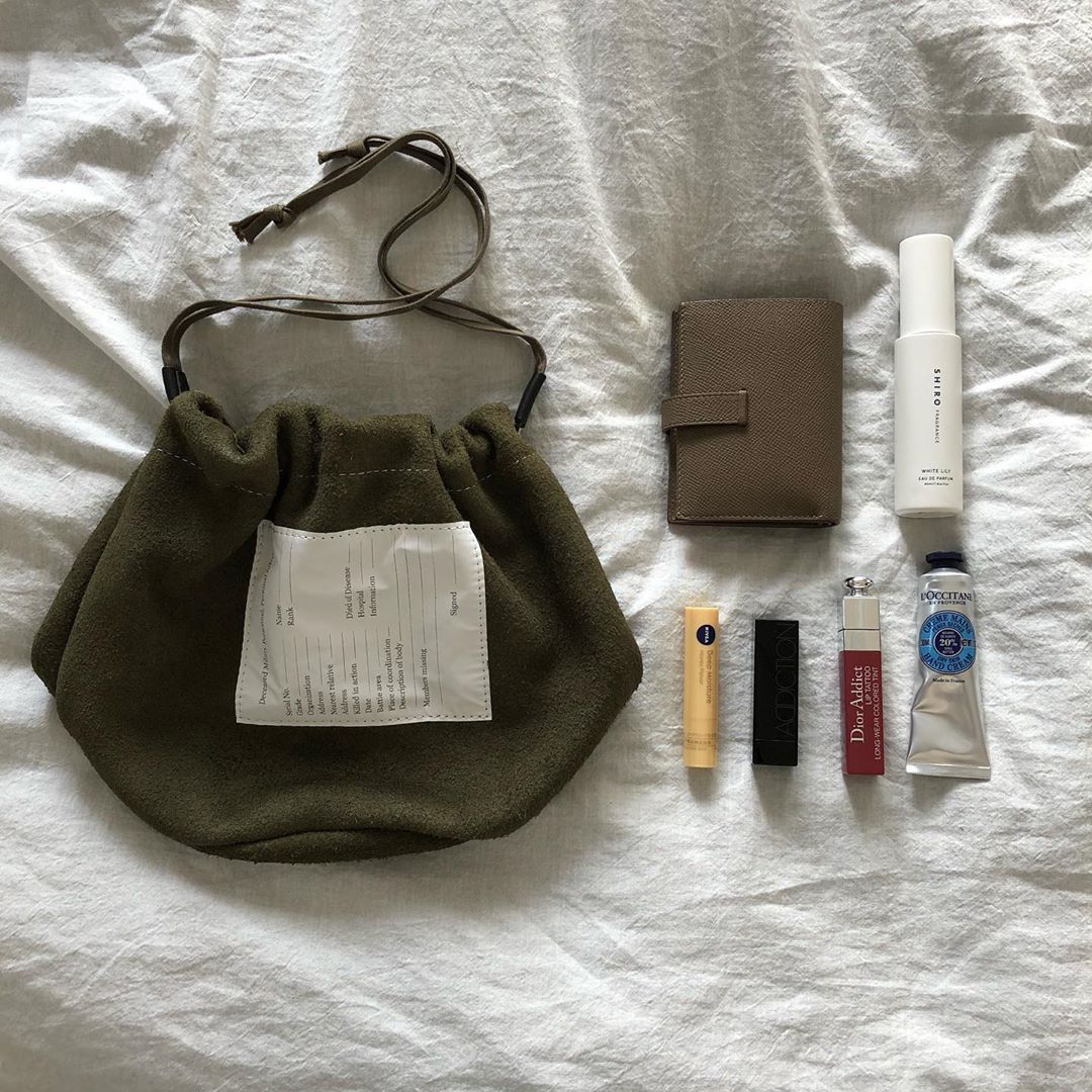 化妝包是女生不可或缺的隨身單品,選擇不佔空間的束口袋款式的話,即使放入很多物品,也會柔軟地改變形狀,很適合放入極簡包包內。材質太厚實的化妝包,並不適合放入小包包內,要特別注意喔!