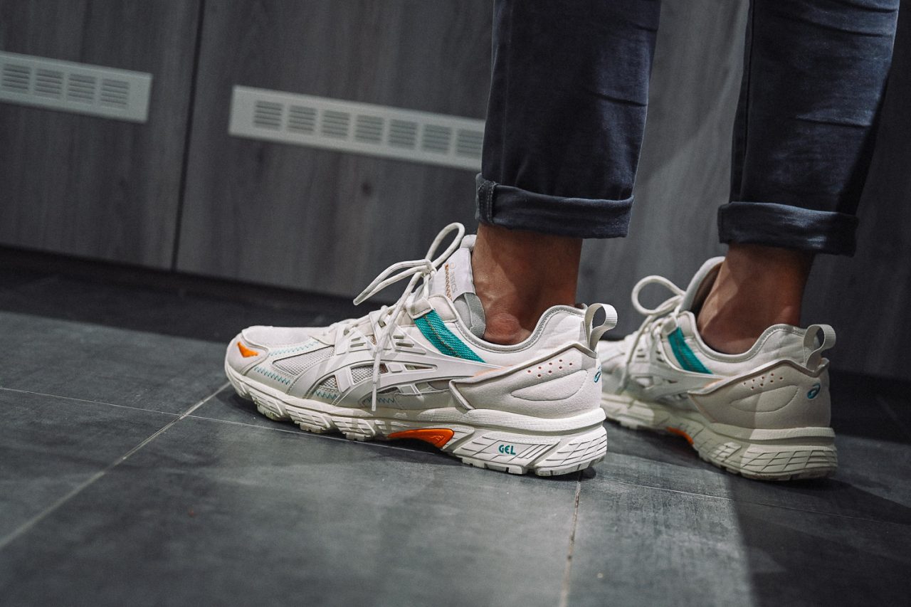 從郊區戶外直奔市區中心的 The Normal ,換上工作裝束, GEL-Venture RE 拍拍上頭的塵土,直接搭配著率性。清爽的配色,尼龍配上麂皮層次,點綴些繽紛對比的青春活力視覺,有點動感,卻不失其優異本感。內藏自豪的 GEL 科技,寬闊舒適的中底,應付著咖啡師必須久站的工作範圍,同時也要保持著自己的特色本性,對於 Cohl 來說,的確是駕馭可以。