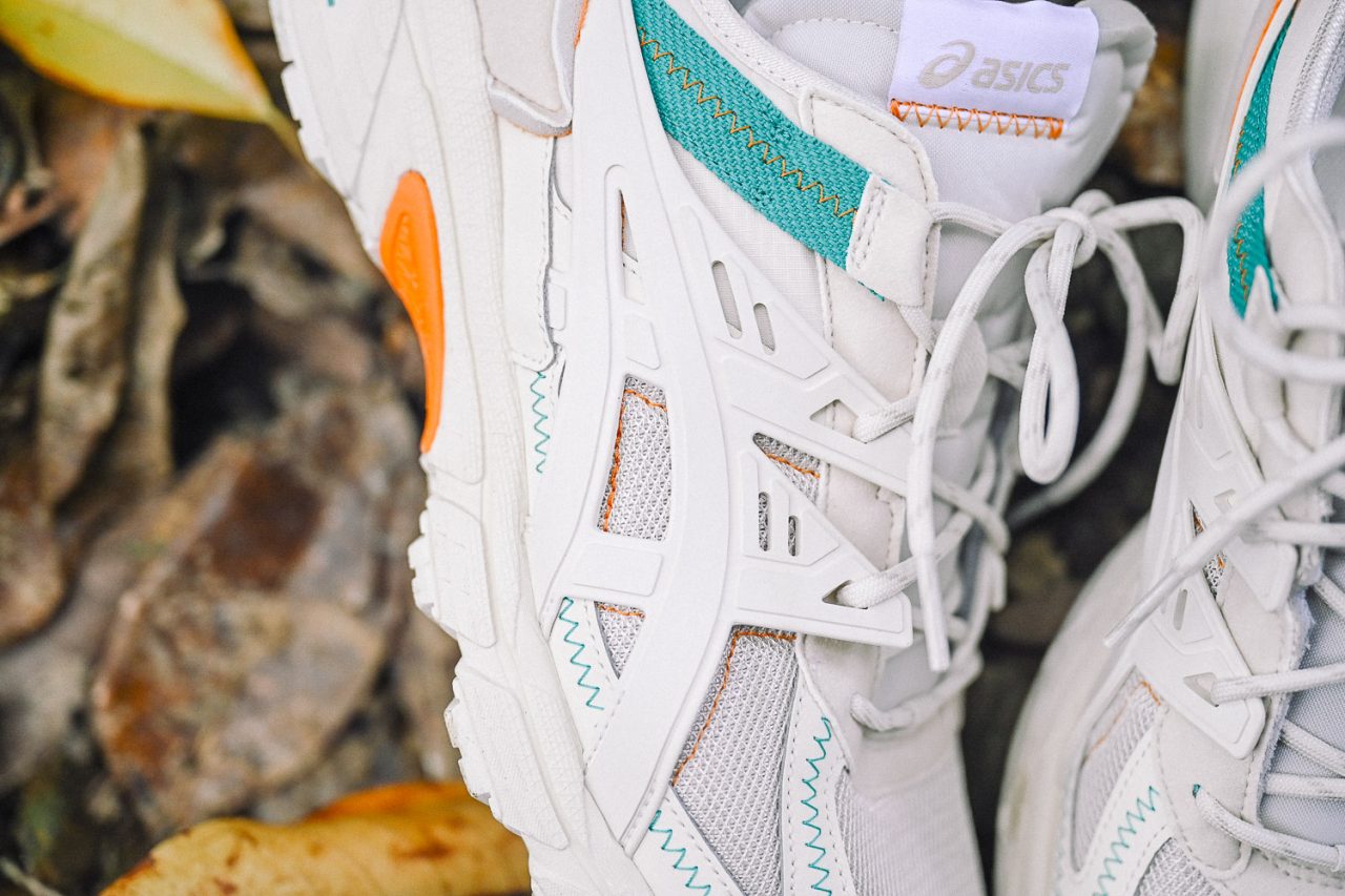 簡單的山徑不需要專業的登山鞋款,反而是舒適簡單的日常鞋款就足夠應付。有著戶外鞋款血統的 GEL-Venture RE ,在外底上還是保留著大型顆粒的越野性能。鞋面織帶、鋸齒縫線與刻意未收邊的邊緣細節,為鞋款帶了更多的粗獷不羈感。而鞋面的虎爪標誌,利用 TPU 製作立體的框架,有著 GEL-Kayano Trainer 的既視感,多樣的材質層次,帶來豐富的面貌。