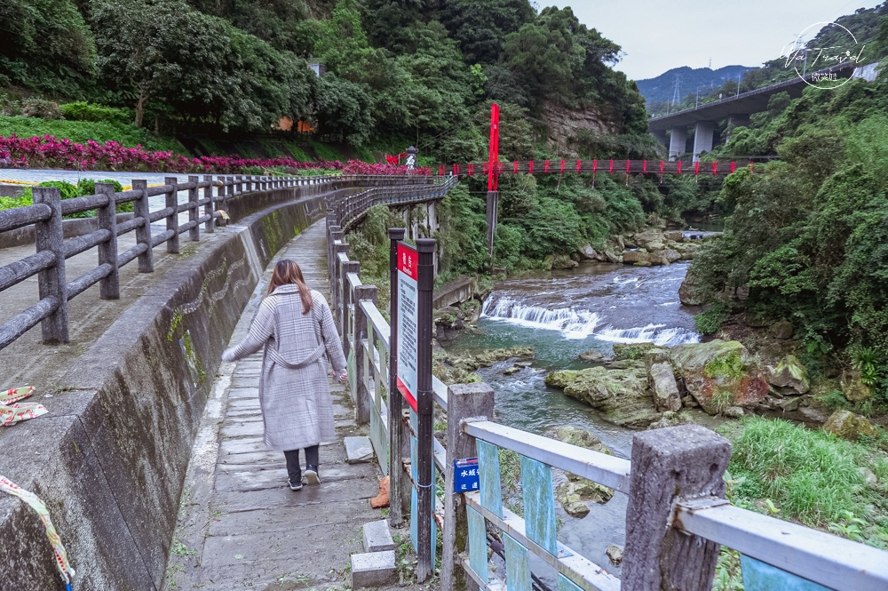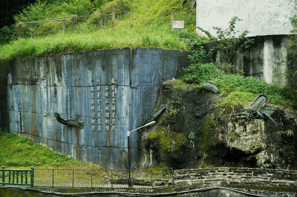 而溪水的旁邊大石雕刻著「 龍穿雲霄鱗光閃閃,石碇山城聞蛟聲,門跨蒼穹流水潺潺,烏塗溪畔指鯉影。」仔細看溪水兩側還真像神龍磐過,令人感到神奇。