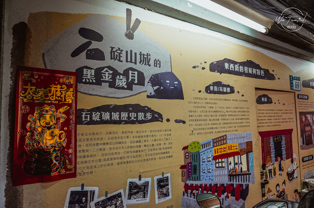 ▴走進不見天街,牆面上繪圖著石碇老街的可愛圖愛還有說明東西街發展特色、石碇礦城的歷史,包含東西兩邊的建築故事都相當清楚,經過時不要忘記停下腳步,好好欣賞這超巨型的地圖