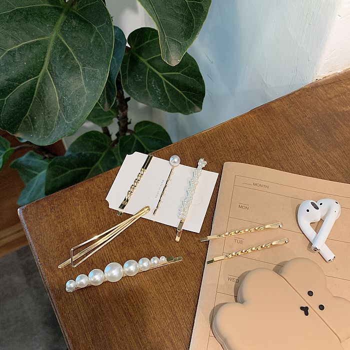 大家應該最常看到這個珍珠款,這種夾法很乖,但也很甜美~不會太幼稚,通常髮尾要再加個內灣,會讓整體看起來溫柔許多喔!塞耳後夾法x細小金夾