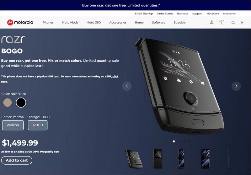 刀鋒機賣不好?Motorola 在自家官網推出買一送一活動變相對折促銷