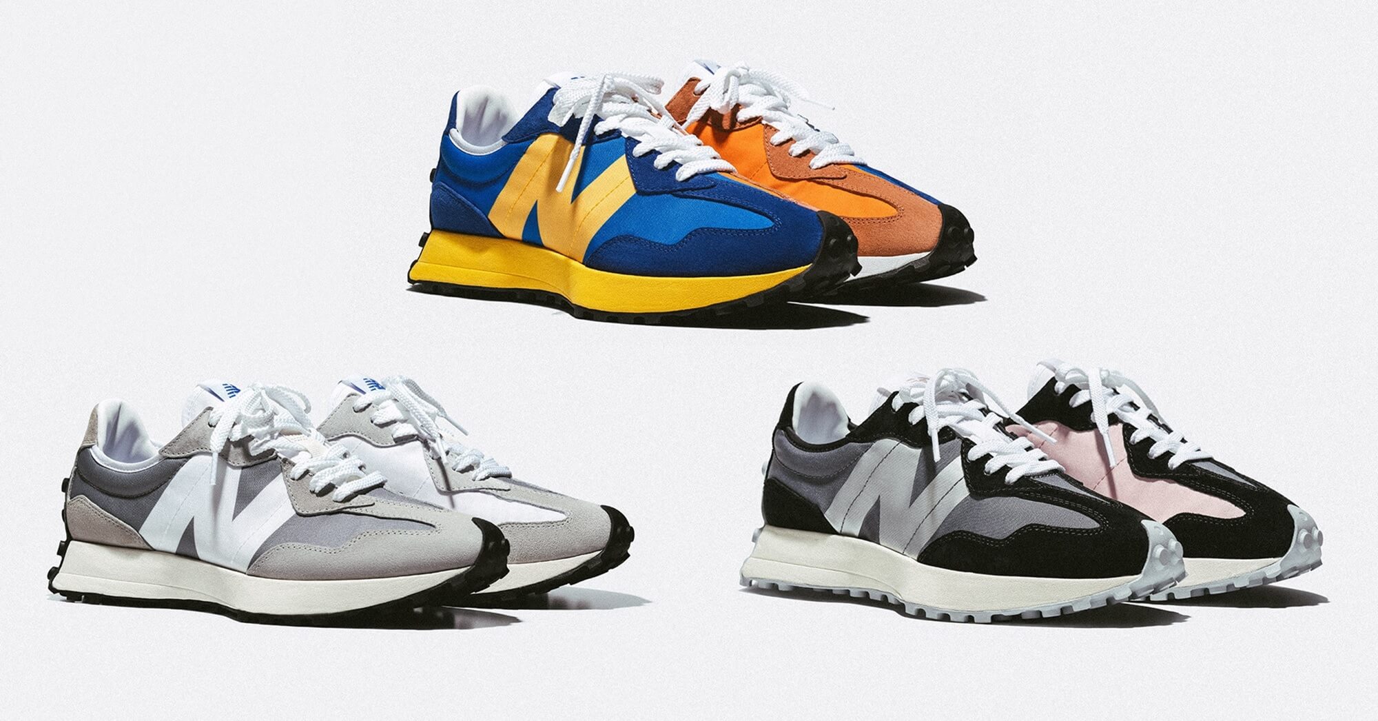 於 1970 年推出的 3 系列跑鞋之於 New Balance 具許多有象徵性故事,M320 具有流暢的外觀,是第一雙於鞋身上有標誌性大 N 字 logo 設計的跑鞋,也是美國著名馬拉松健將 Tom Fleming 奪得 1975 年紐約市馬拉松冠軍的著用鞋款,M320 隔年更獲得 Runner’s World 雜誌評選為「世界第一慢跑鞋」。1977 年,New Balance 史上首雙越野鞋 Trail 355 正式誕生,基於美國 New England 地區的越野賽道極為濕滑,此款鞋子採用由釘鞋概念改良而成的平面顆粒防滑設計,為當時的越野跑手供提了高機能性的出色跑鞋選擇,「泡泡大底」於後腳跟處的延伸設計也成為現代 New Balance 327 一大特色!不同於過往流暢型設計,全新 327 以帶有稜角的曲線凸顯分量感,鞋身上誇大的 N 字 logo 成為更趨近色塊的表現方式,使全新 327 帶有摩登個性,而不變的是 327 同樣保有鞋款輕量且透氣舒適特性。