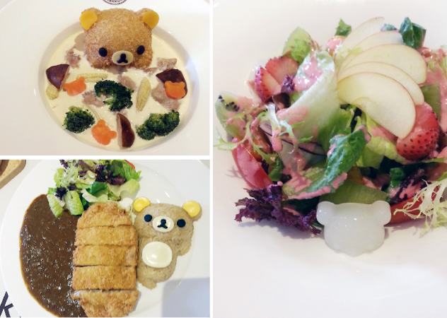 Rilakkuma Café從開胃菜到主餐、甜點完全兼顧色香味俱全,像是營養滿分的小白熊莓果優格鮮蔬水果沙拉、濃郁好喝的拉拉熊麵包濃湯,以及非常療癒的拉拉熊白醬雞肉飯與拉拉熊豬排咖哩飯都不能錯過。