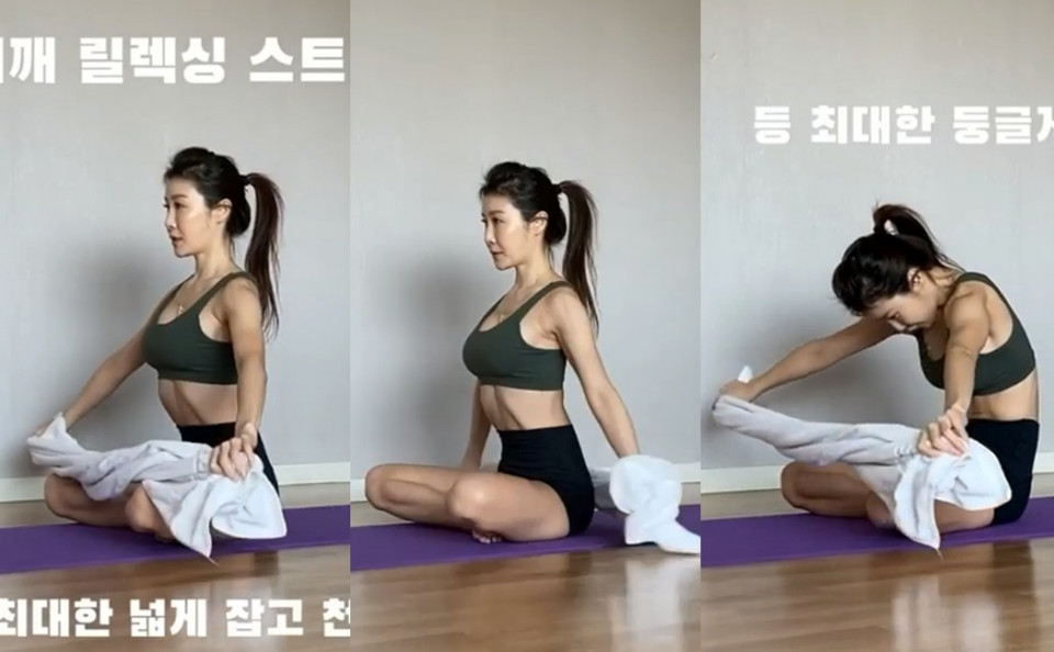 瘦小腹動作STEP 4:肩頸毛巾操
