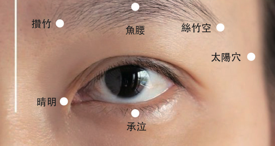 按摩時,除了加強肌肉拉提,也可以針對我們眼周穴位做加強按摩,以此改善血液循環、舒緩眼睛疲勞。