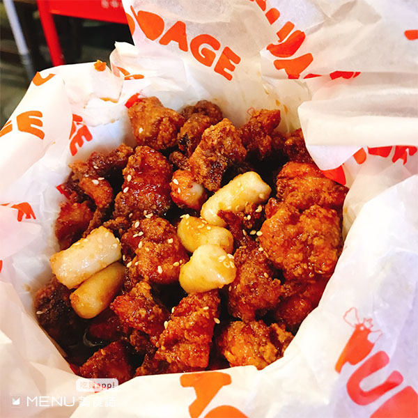 外送盒包裝超用心!從炸雞完成時間到宅配到府拿捏得很剛好,保有鮮嫩雞汁的品質值得等待,韓式甜辣紅醬讓不吃辣的人也能接受,再點炸年糕一起吃口感更豐富。