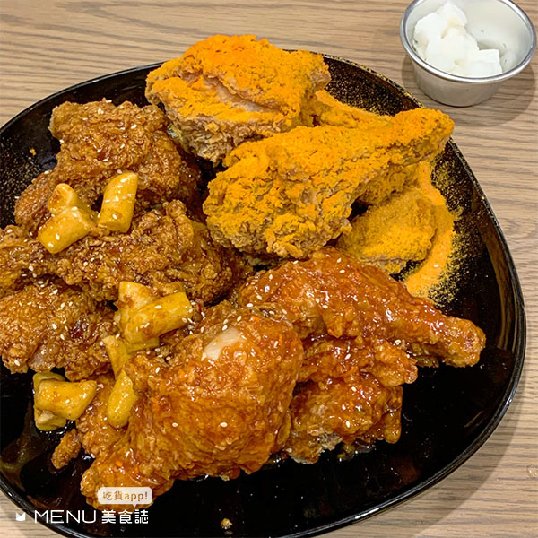 在韓國已有30多年歷史的老店,來到台灣也相當夯,有必備韓式必備的半半炸雞也有全雞和去骨可選,有頂級洋釀、招牌洋釀人氣青蔥等多達8種口味選擇,可以外送或外帶,快速又能宅在家繼續追劇!