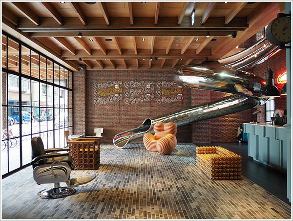 在門口就聽到路人驚呼:「這是啥? 溜滑梯,不會吧,真的能溜嗎? 」 它貨真價實,是可以溜的溜滑梯無誤! 這就是台中中華路附近最文青的飯店「紅點文旅」。
