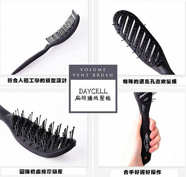 就用這把好梳→『韓國 DAYCELL推出的扁頭通風髮梳』,輕鬆梳出蓬鬆順髮!這款梳子有經過人體工學的頭型設計,本身的形狀帶有一點弧度,能使吹整過的頭髮自然彎曲,呈現最佳的蓬鬆度,連彩妝大師Pony也愛用唷^^