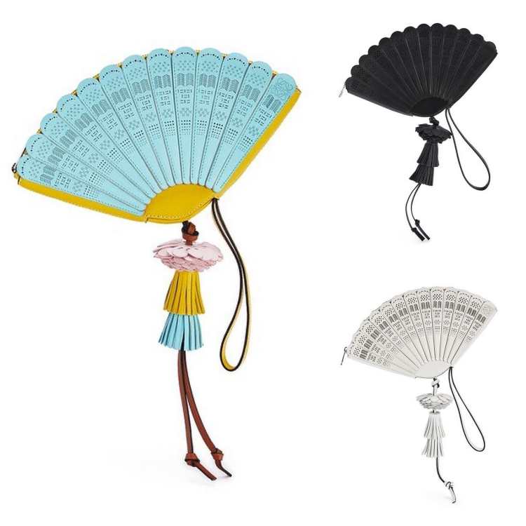 身為最會做怪包的品牌,來一隻折扇也不為過吧!昨日品牌創意總監在個人 Instagram 上Po出這三隻扇子,乍看會以為是一個吊飾,仔細看才會發現原來這是一款手拿包呀!皮革雕刻的紋路加上細膩的拼接,成功的將東方元素用最童趣的方式表現。