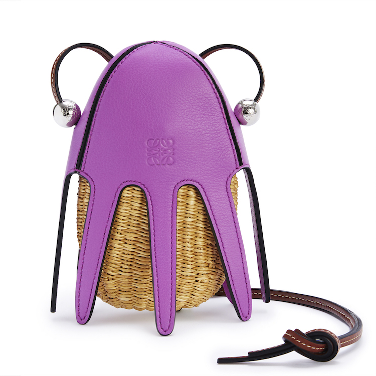 今年 Paula’s Ibiza 系列推出的章魚包,亮眼的紫色配色結合藤編的包體設計,少了過於具象的外型設計僅留下八隻小觸角,整款包呈現出濃濃的夏日的氣息。