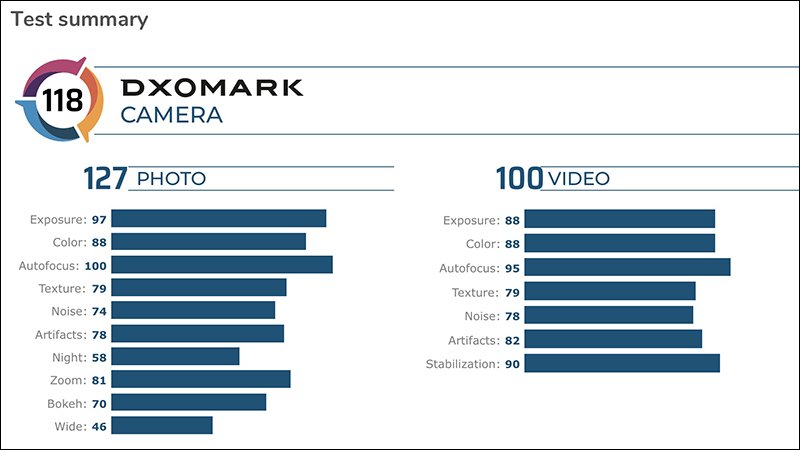 Galaxy S20+ 在 DXOMARK 相機評測成績獲得 118 分的總分,雖然這成績仍是款相機性能出色的手機,不過在目前競爭激烈的手機市場, Galaxy S20+ 這成績僅能列排在 DXOMARK 目前的智慧型手機相機評測的第 10 名。