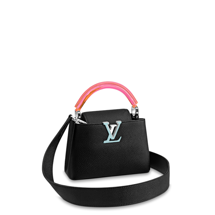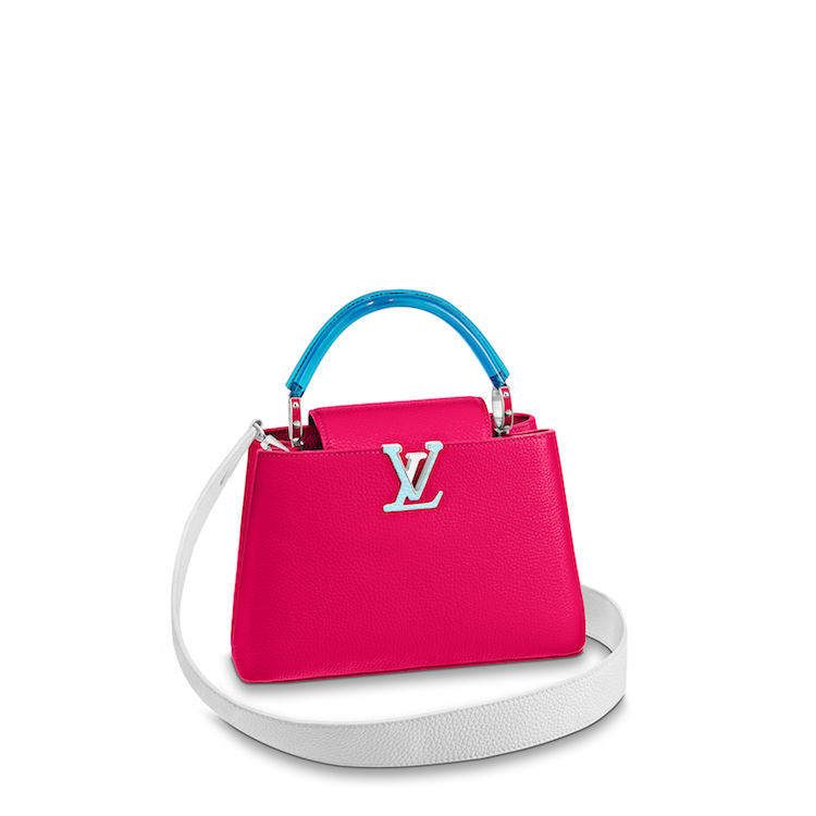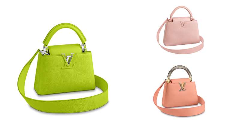 從 2013 年至今 Capucines 系列包款已推出無數種配色,到 2020 年春夏 Louis Vuitton 除了注入更多的春意盎然的色彩外,更在提把及標誌性的品牌縮寫 Logo 中加入許多特殊的質材讓 Capucines 這款包變得活潑有趣。