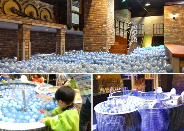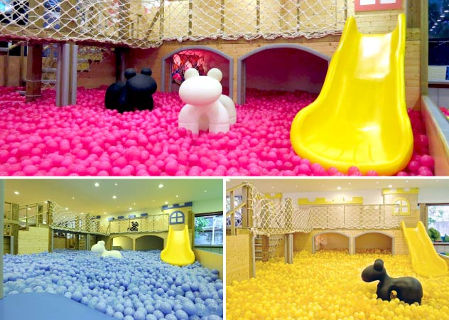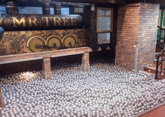 大樹先生的家在戶外有沙坑,室內則是有最吸睛的球池。專屬的大樹專用球,除了有CE認證,上面還有大樹的Logo。具有無法阻擋的吸引力,是小朋友的最愛。在球海波浪中盡情翻滾跳躍,在爬坡、索橋、廊道、滑梯、球池的循環中,小孩不知不覺的學會了平衡、律動、及肢體協調。也藉由短距接觸,建立禮讓的人際規則。 球池內有多少顆球?30,000顆以上!稍偏軟的球體設計可有效吸收撞擊能量,可促進小孩的柔和觸感。透明及不透明雙球混搭,輔以投射燈光,顯現一種閃亮跳躍的特殊氛圍,當小孩池中躍起,池球隨之舞向上空,夢幻極了。