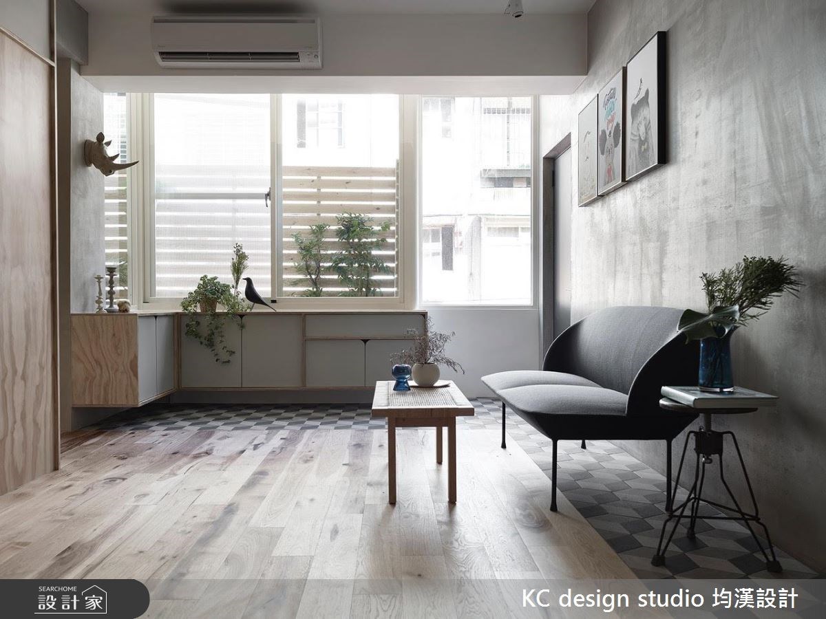 01.木地板 x 仿清水模磚:用地坪轉換表現空間藝術