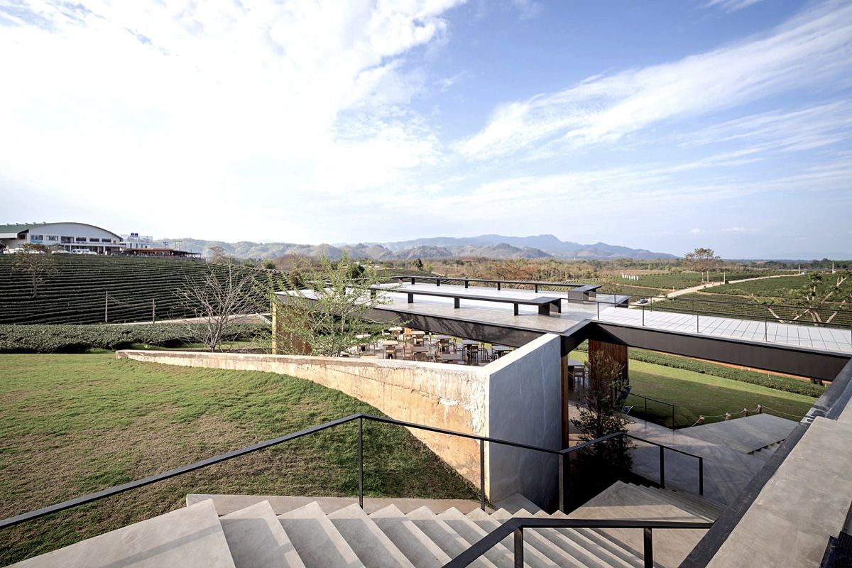 顧名思義,Choui Fong茶咖啡廳位在泰國的Choui Fong茶園附近,建築師沒有將咖啡廳蓋在山頂上,而是決定把建物隱藏在山上,藉以創造出更寬廣的視野。這種想法讓遊客得以全方位領略茶園景觀,走上咖啡廳的屋頂,不僅能享有360的無阻礙視角,還能觀察農民的採茶活動,悠閒感受田園自然氣息。