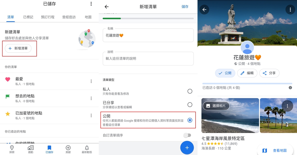 如果有很多想去的景點也可以先儲存起來,然後建立成一個清單,如果是想要跟朋友一起去的話,還可以把這個清單分享給其他人唷!只要有開啟「共同編輯」這功能的話,大家就可以在上面新增自己想要去的地點,那這樣在討論行程的時候,就會非常清楚啦!也不會說每次都只有一個人在規劃很累心情很差了~