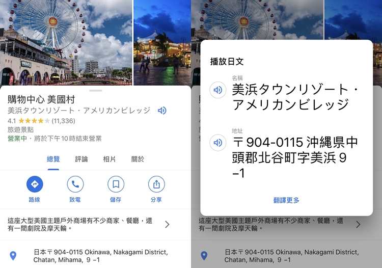 到了國外不知道景點名稱怎麼唸,不用擔心!只要點選景點名,景點名旁有聲音的按鍵,點選他就會有聲音出現,連地址也會有聲音喔!這樣出國在外可以直接給司機聽,不用擔心不會說該怎麼辦了!不過儂編要提醒一下各位,這項功能不是每一個景點都有提供喔,所以使用時還是要注意一下~
