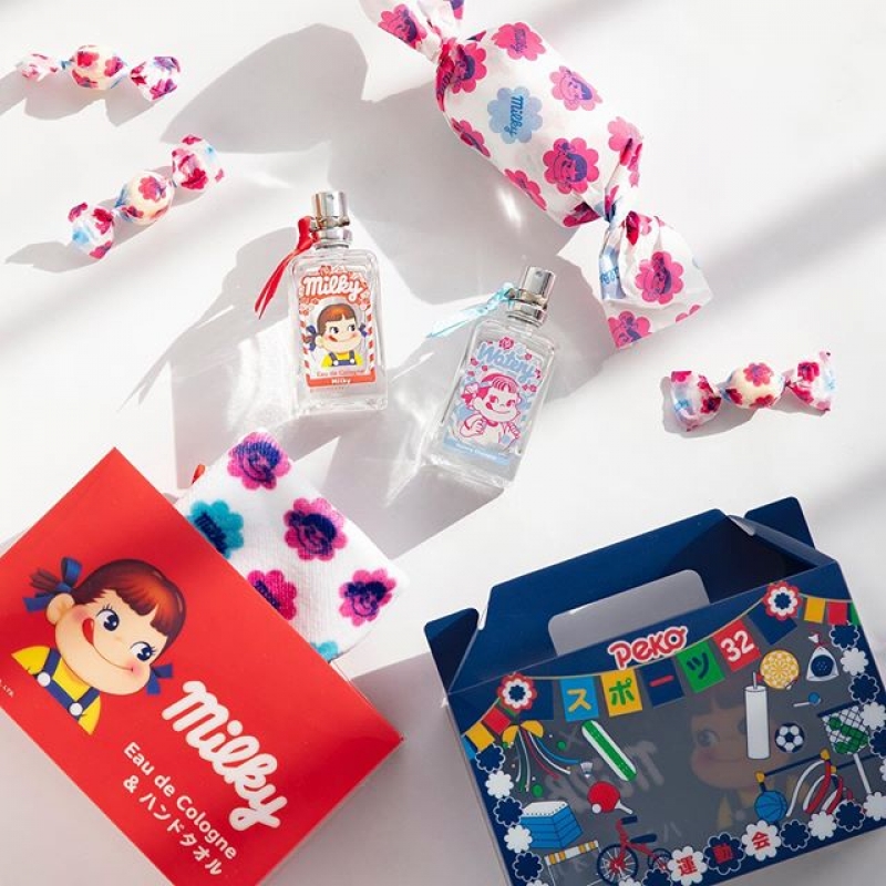 香水系列以經典的紅色作瓶身,並加上了運動裝的「Peko醬」籃球、棒球、足球、騎馬、射箭等造型,換上不同服裝的Peko醬好可愛,真的超想每款都入手呢!