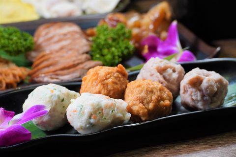 吃火鍋絕不能少的「手工鍋物」們,也是大人氣品項之一,芋角鮮肉丸、手工四川抄手、經典老油條都是必點!