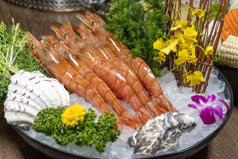 吃到飽可以選擇的「頂級海鮮」,則是有足足大好幾倍的東石鮮蛤與阿根廷天使紅蝦,肥美九孔鮑魚、鮮嫩深海金目鱸魚、蘇澳小捲等等...,海鮮控保證吃得超開心。