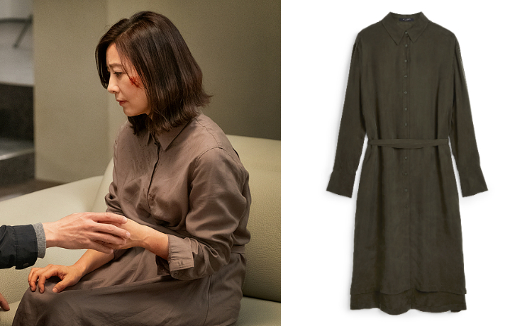 在韓劇《夫妻的世界》中互相較勁的金喜愛和韓素希,前者在劇中換上Flyn襯衫洋裝,運用合身垂褶搭配繫帶設計,襯托出美魔女的完美好身材,且不同於過往幹練套裝的風格,完美襯托出金喜愛在劇中身為正宮被背叛後,溫柔而堅毅的形象。