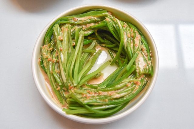 一般水蓮的料理方式都是用蒜頭清炒,沒想到加上胡麻醬也如次速配!