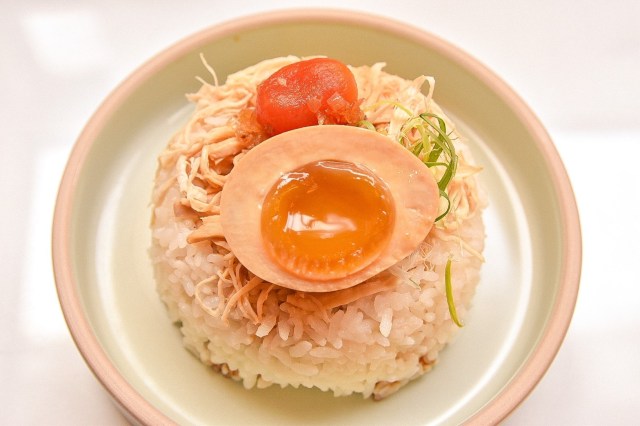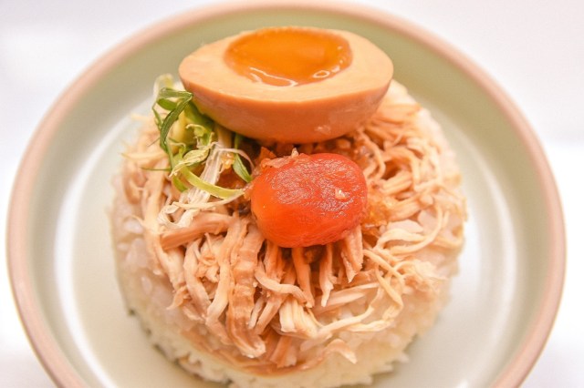 手撕雞飯,就像是古早味的雞肉飯,淋上香噴噴的雞油,加上濃郁的糖心蛋、鹽漬番茄,讓簡單的雞肉飯,也呈現的更有質感~